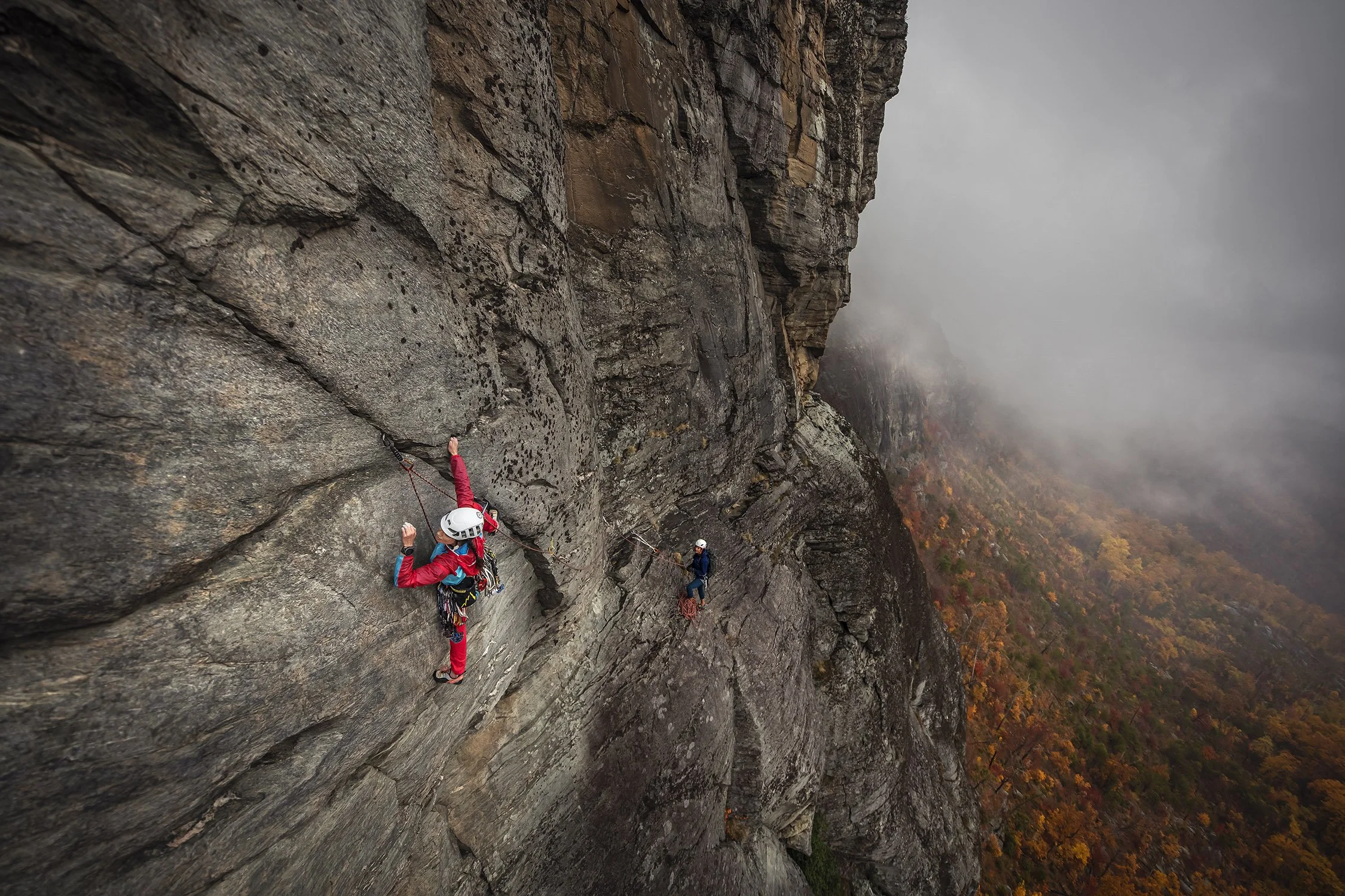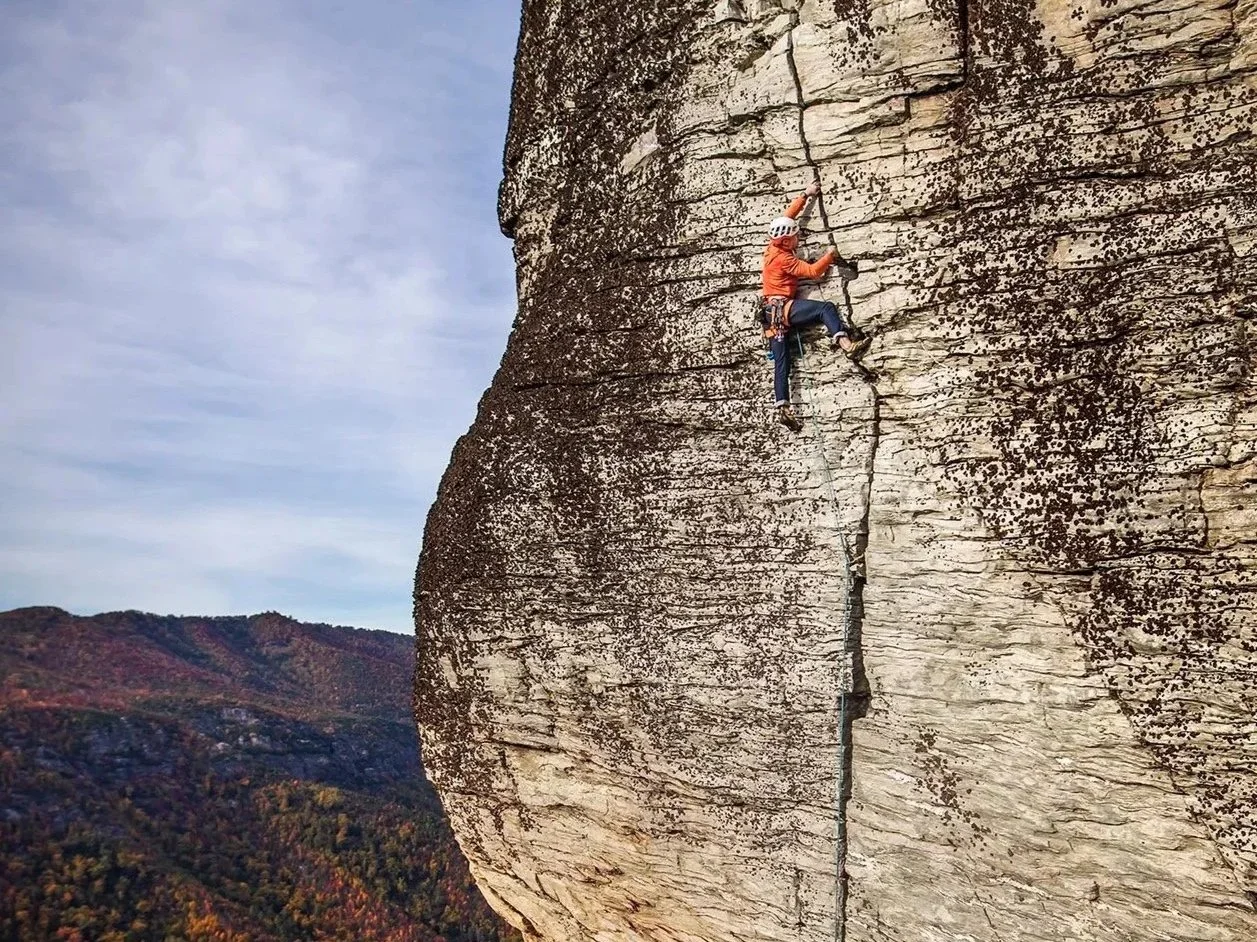 Getting to the base is part of the adventure. The approach begins at the Wolf Pit Road trailhead near Lake James, follows the Shortoff Mountain Trail through a fire-adapted landscape of open ridgeline and sweeping views, then descends a technical gully — complete with a rappel or a fixed hand line — to reach the cliff base. The remoteness, approach complexity, and potential for afternoon storms make Shortoff more serious than its technical grades suggest. It is one of our go-to venues for climbers building their adventure climbing résumé in a true wilderness setting, and an experience that is hard to replicate anywhere else on the East Coast.