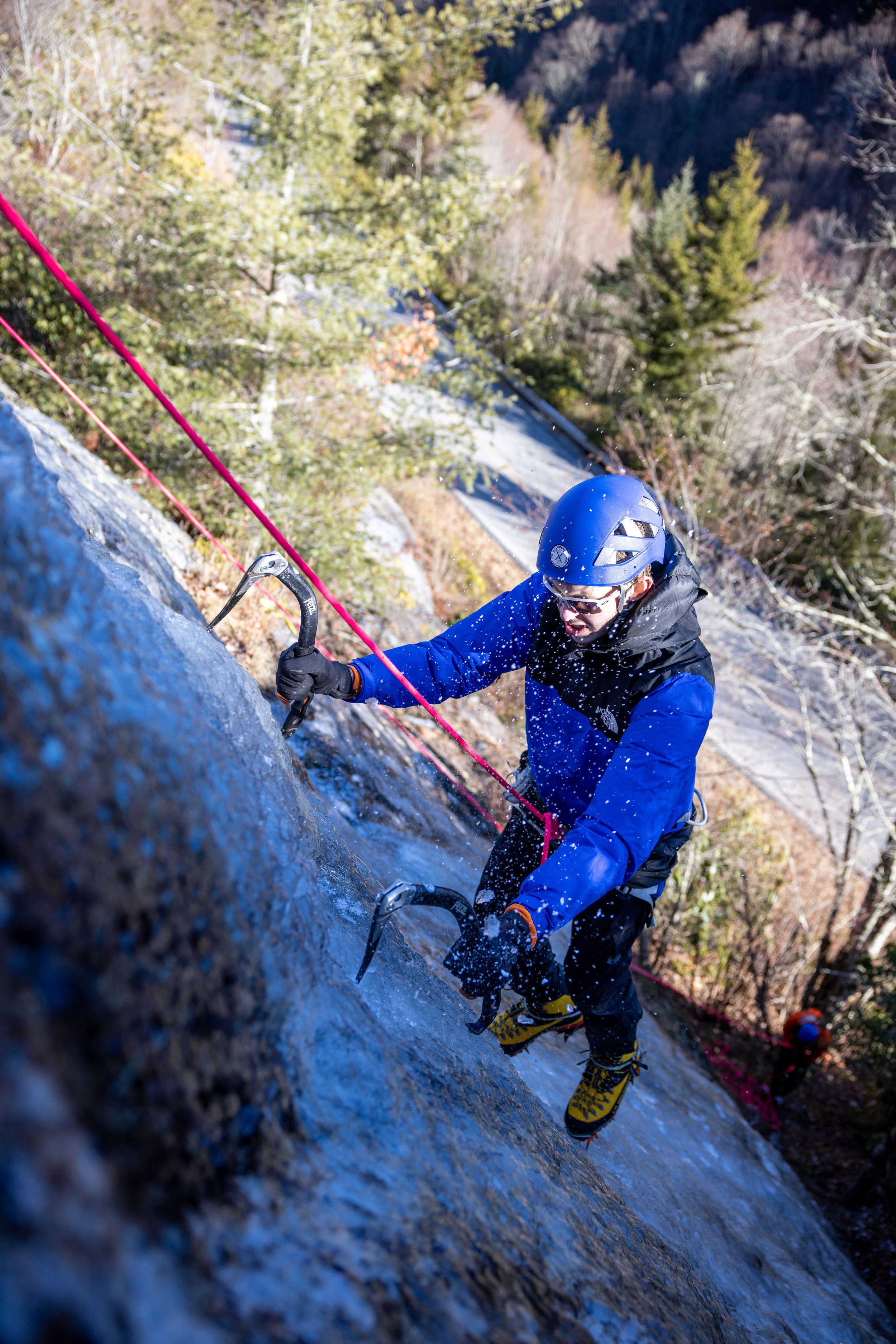 Ice climbing conditions in the southeast are hit or miss. Feel free to reach out for an update on ice conditions in North Carolina! We can also arrange trips across the country in the northeast or out west to tackle some bigger, icier objectives.