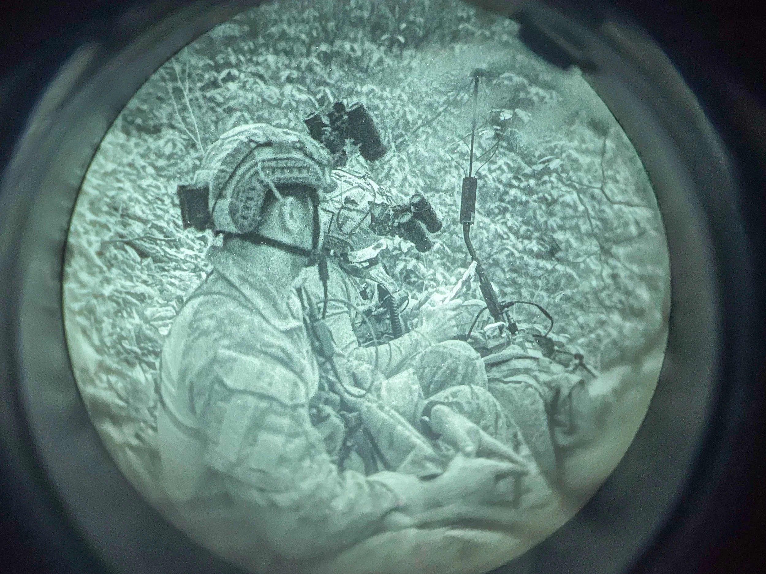 Night operations — terrain navigation and rope work using NODs (night vision devices)