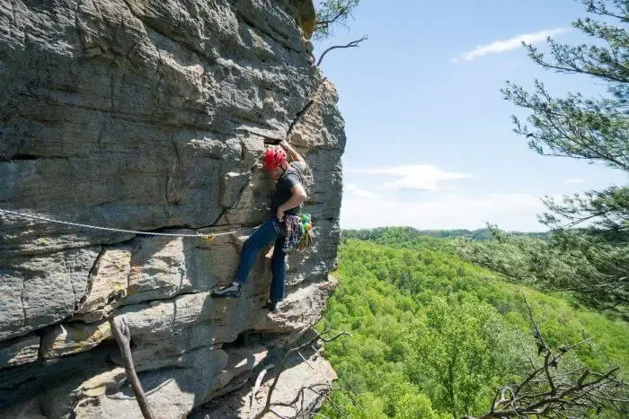 The Red River Gorge is one of the top sport climbing destinations in the United States and is located just south of Lexington, Kentucky.