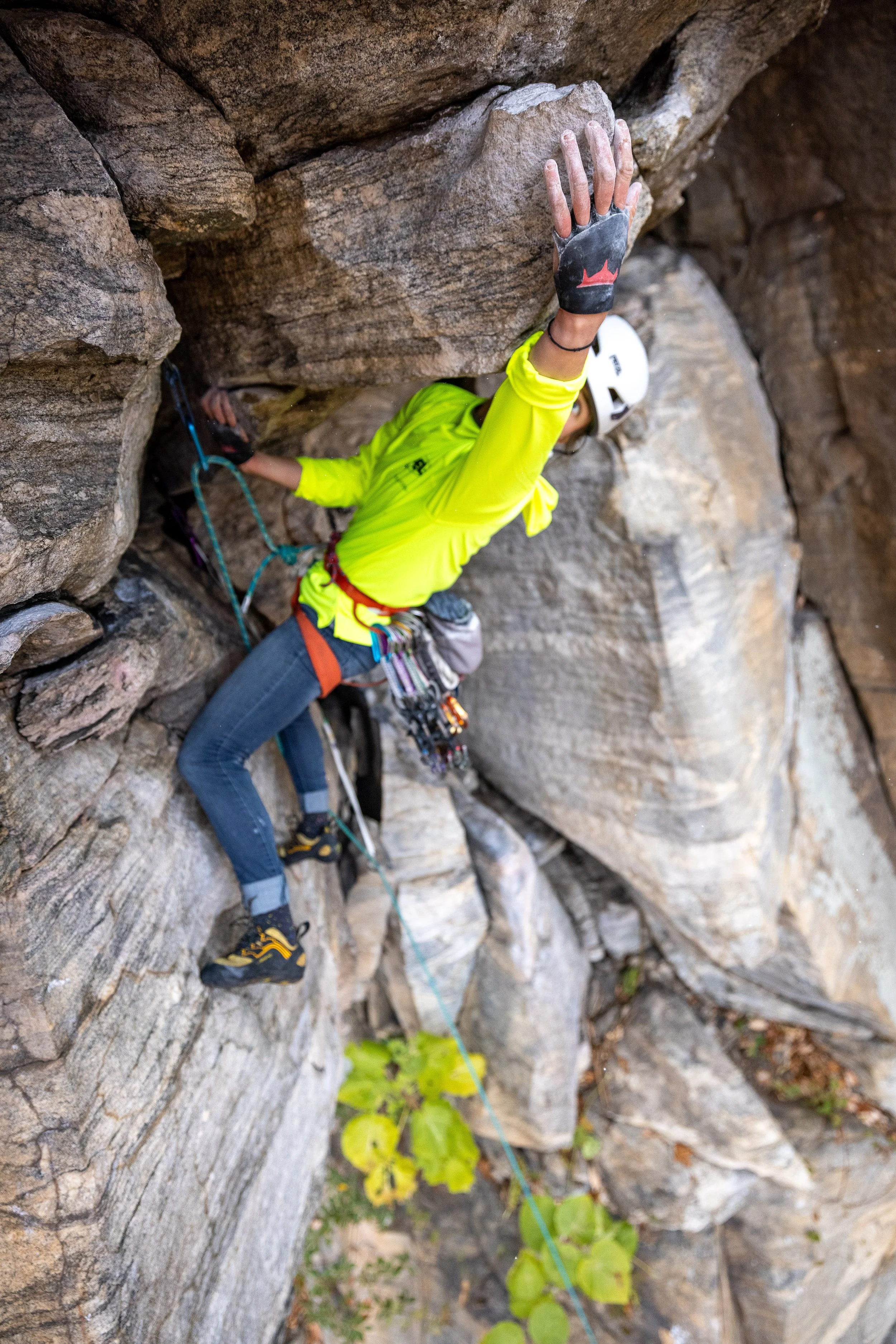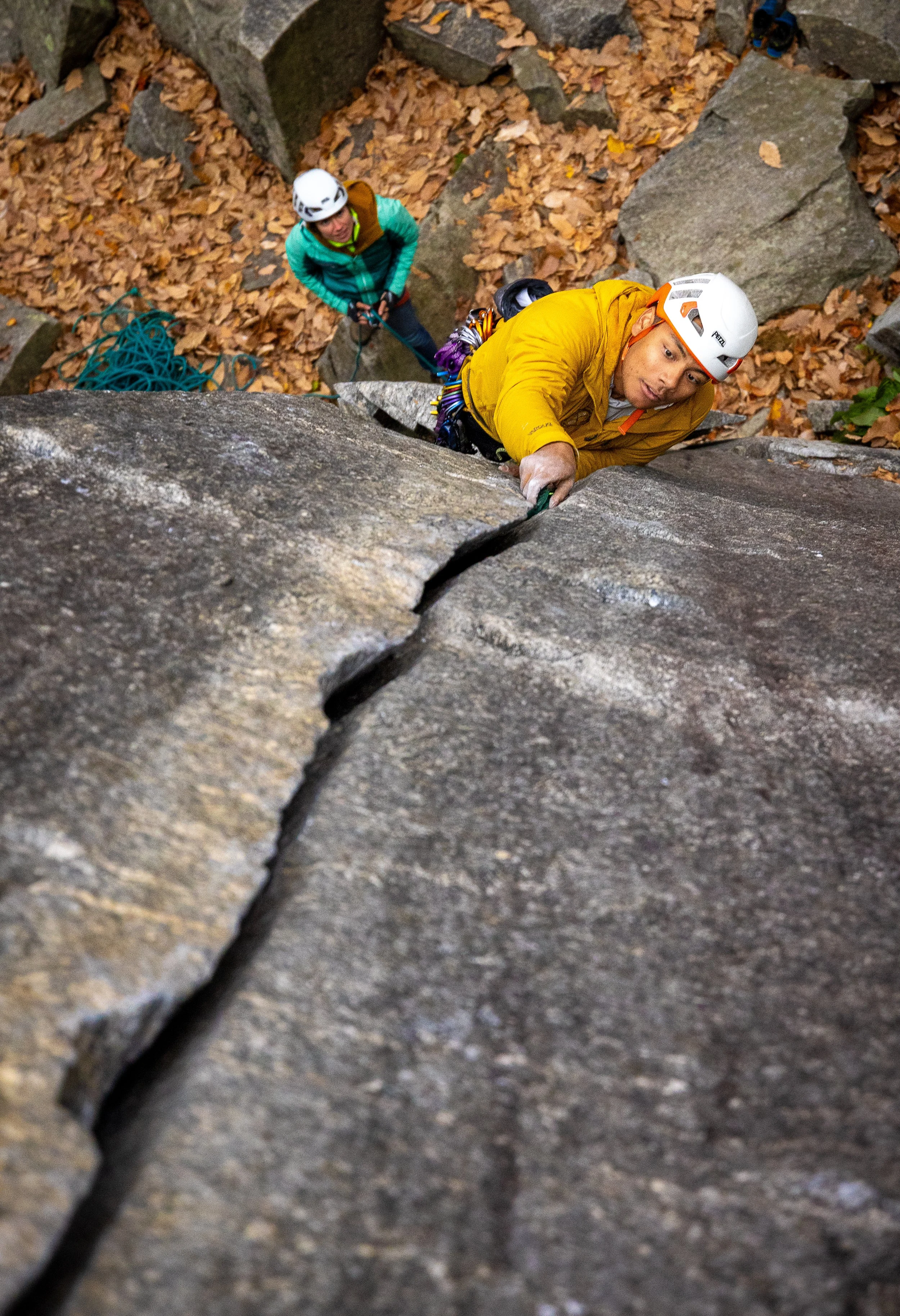 A perfect intro to crack climbing on the first pitch and a fun pitch of chimney climbing in the second pitch!